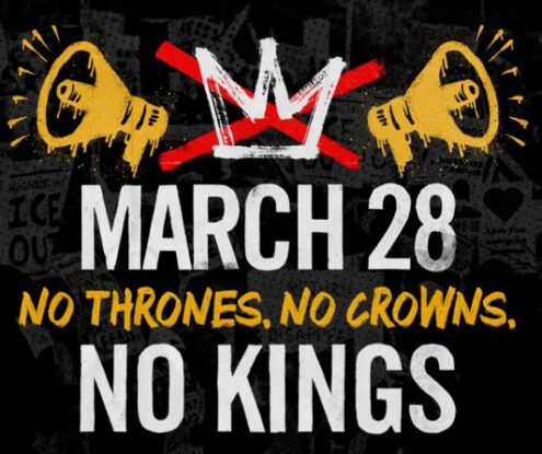 USA/No Kings Day— Thousands across the nation are expected to show up at “No Kings” rallies in their communities tomorrow, Saturday, March 28. Last year, in June and October, two “No Kings” days reportedly drew millions to the streets to demonstrate against President Donald Trump’s heavy-handed governing style and controversial policies. On the front page of the “No Kings” […]